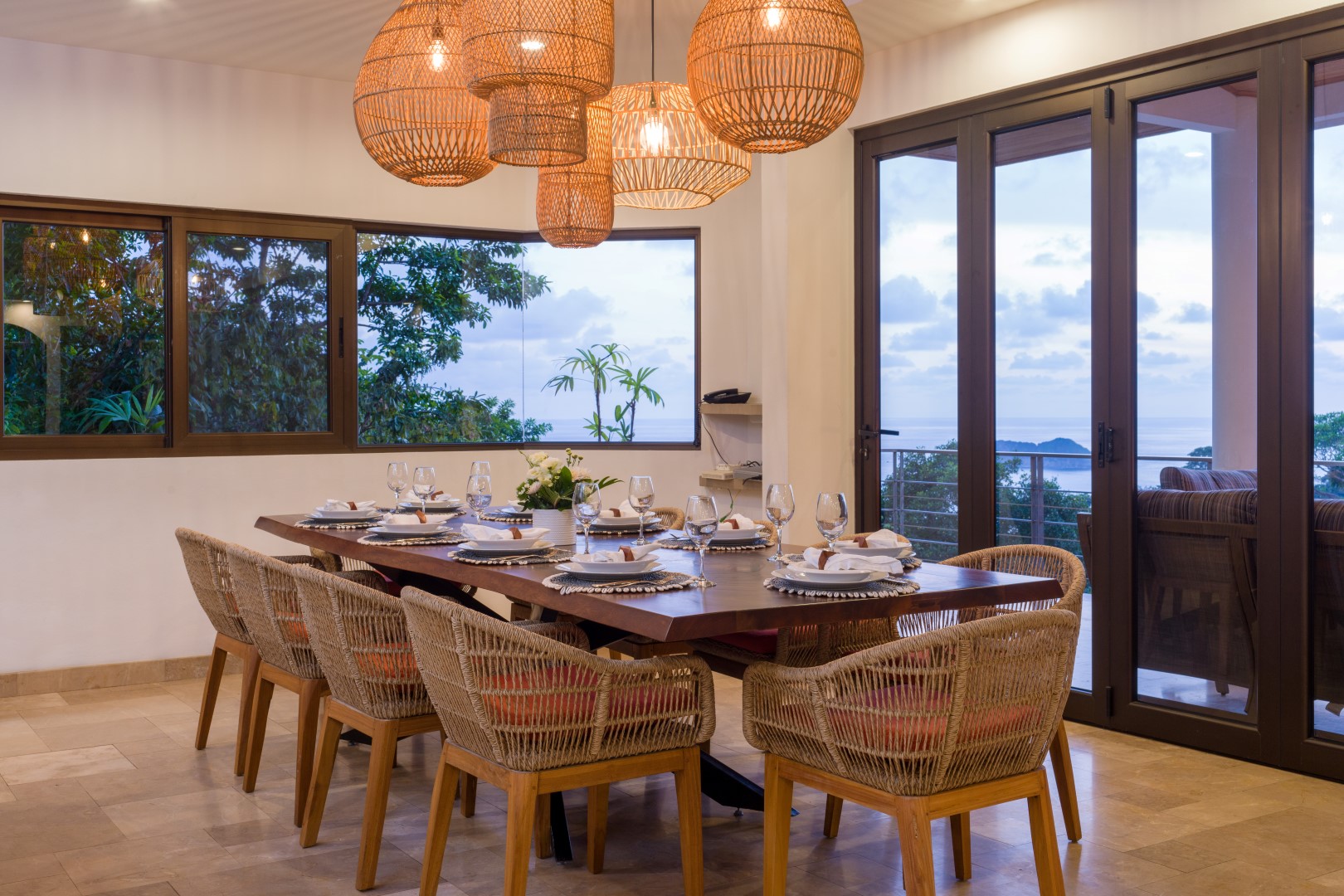 Set above the verdant hills of Manuel Antonio, Casa Anjali blends contemporary design with sweeping views of the Pacific Ocean and surrounding jungle. Floor-to-ceiling glass, vaulted teak ceilings, and open living spaces bring nature into every corner of the villa. The outdoor terrace and infinity pool offer striking panoramas and immersive wildlife experiences, including visits from tropical birds, monkeys, and sloths. Just minutes from beaches, national park trails, and local activities, this villa provides an elevated coastal retreat with effortless access to the region’s best offerings.