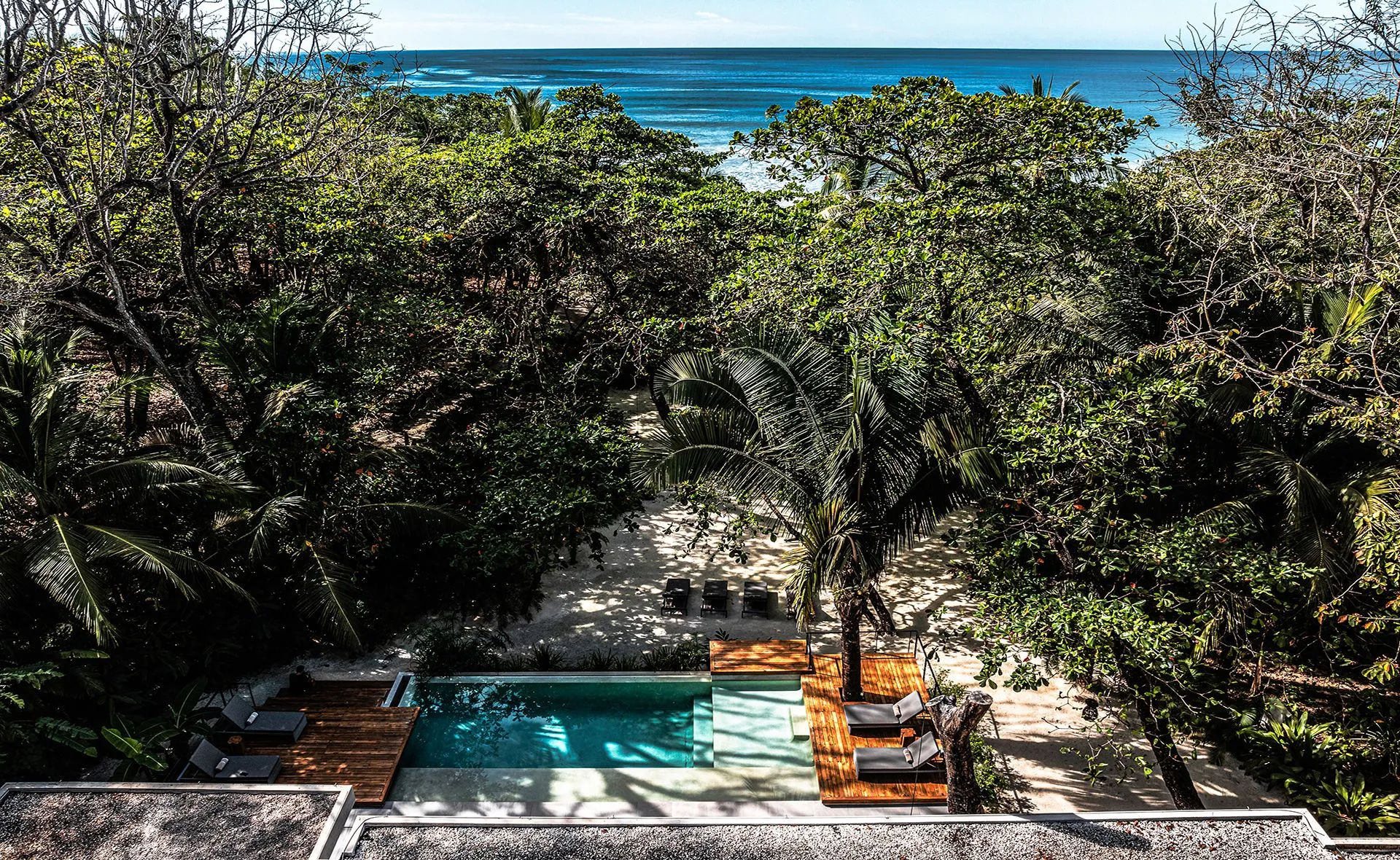 Perched atop a lush hillside in Santa Teresa, Casa Lanui offers expansive ocean panoramas, cool coastal breezes, and a seamless connection between open living spaces and the tropical outdoors. Thoughtfully designed for modern comfort and barefoot luxury, the villa features large terraces, inviting lounging areas, and a private pool framed by sky and sea.