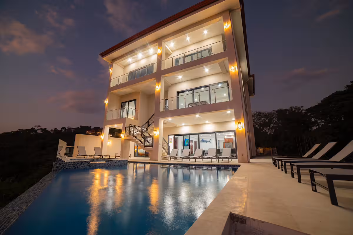 Set within the prestigious Los Sueños Marriott Resort, Maverick Hill House stands as one of the region’s premier large-capacity villas. Its elevated position captures sweeping views of Herradura Bay and the surrounding rainforest canopy, while elegant architecture and generous living spaces create a serene and welcoming environment.