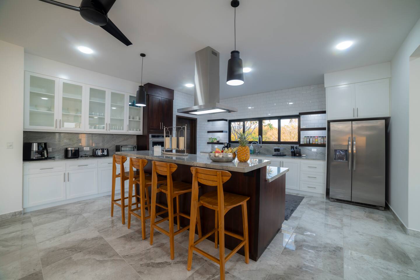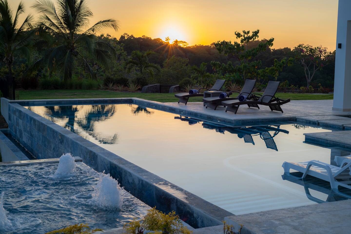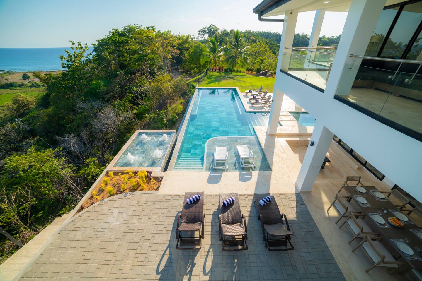 This villa embodies refined coastal living, perched above the lush hills of Playa Hermosa with uninterrupted Pacific views. The home is designed to bring people together with generous common areas, a gourmet kitchen equipped with high-end appliances, and seamless transitions between indoor and outdoor spaces.