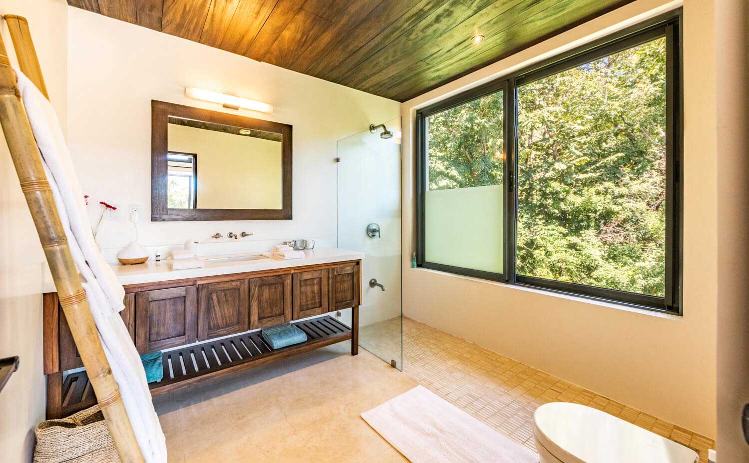 The villa’s minimalist lines, natural materials, and open-air living spaces create a soothing environment that invites you to slow down and reconnect. Views cascade from the canopy to the Pacific, while the soft glow of sunset fills every room with warmth.